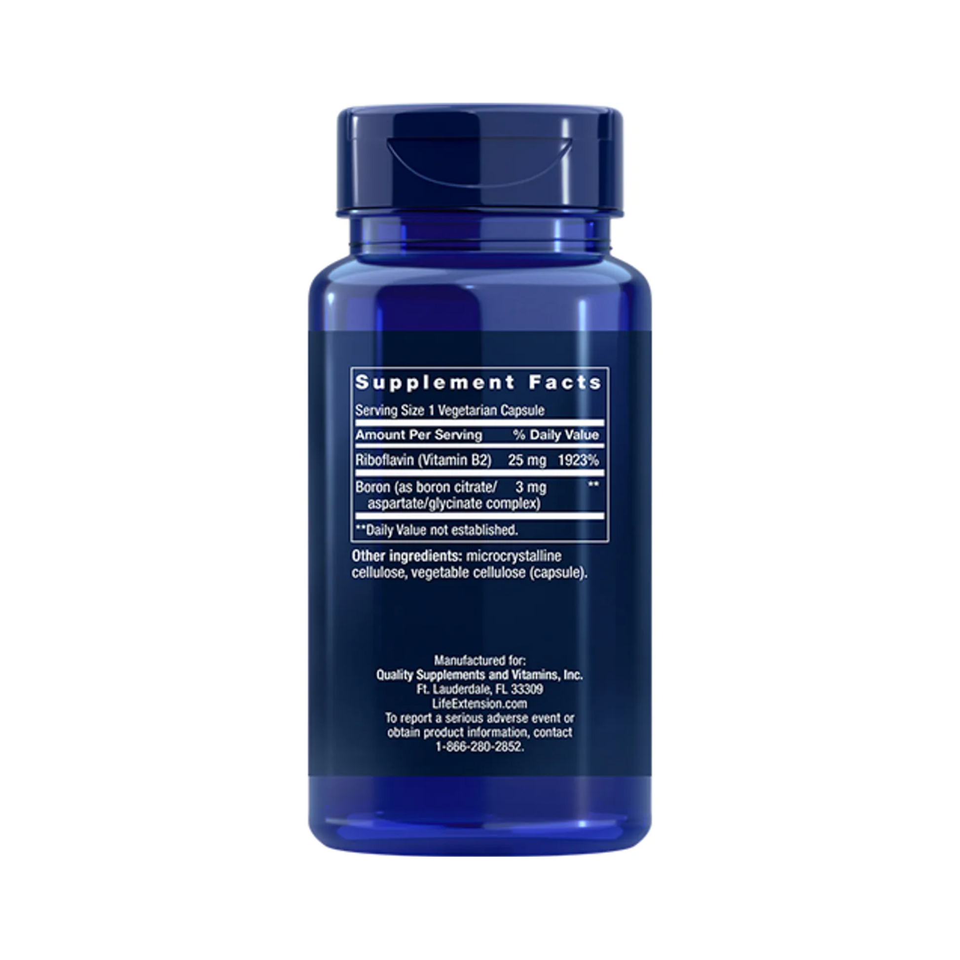 Boron (fra bororganiske forbindelser), vegetabilsk kapsel (hydroksypropylmetylcellulose), fyllstoffer (mikrokrystallinsk cellulose, vegetabilsk stearinsyre).