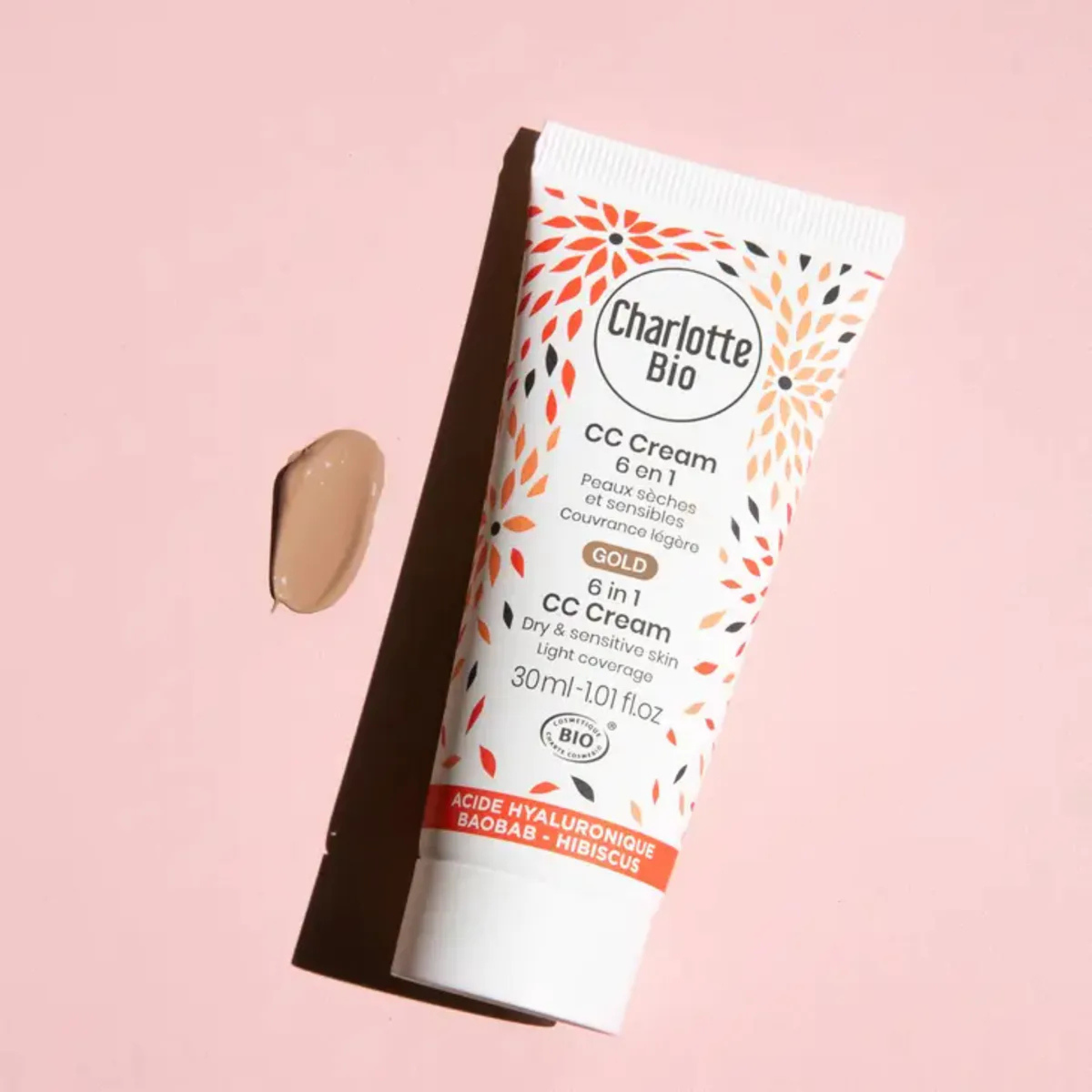 Charlotte Bio CC-Cream Gold er en økologisk 6-i-1 CC-krem som jevner hudtonen, gir glød og tilfører intens fukt. Den lette formelen med hyaluronsyre, sheasmør, rosevann og baobab smelter inn i huden og gir en naturlig “bare skin”-finish. Fargen Gold passer medium til gyllen hudtone.