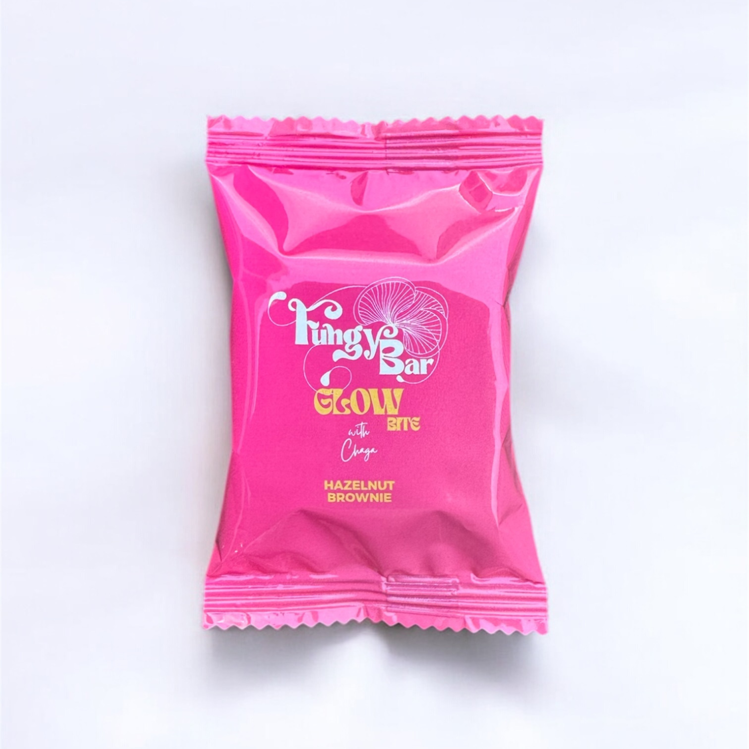Glow Bite er en funksjonell sjokoladebar utviklet for å gi deg både smak og skjønnhet i hver bit. Den kombinerer næringsrike ingredienser med adaptogene sopper – perfekt når du vil støtte hud, energi og velvære på en enkel og naturlig måte. Baren har en dyp smak av hasselnøtt brownie med sjokoladebiter. En liten daglig “treat” med store fordeler.