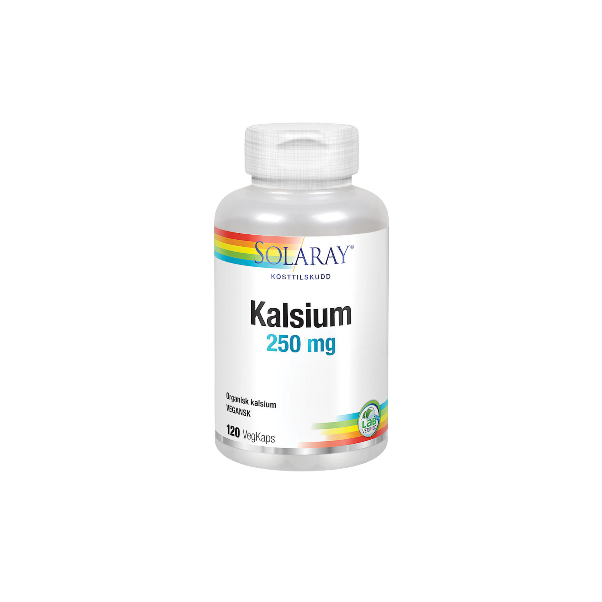 Solaray Kalsium 250 mg er et kosttilskudd som inneholder kalsium bundet til sitronsyre (kalsiumsitrat), en form som er kjent for sitt gode opptak i kroppen. Produktet er beriket med mineralrike urter som løvetannrot, persilleblad og grønn engelsk karse, som kan bidra til å støtte kalsiumopptaket. Kalsium er essensielt for oppbygging og vedlikehold av skjelett og tenner, samt for normal muskelfunksjon og nerveoverføring.
