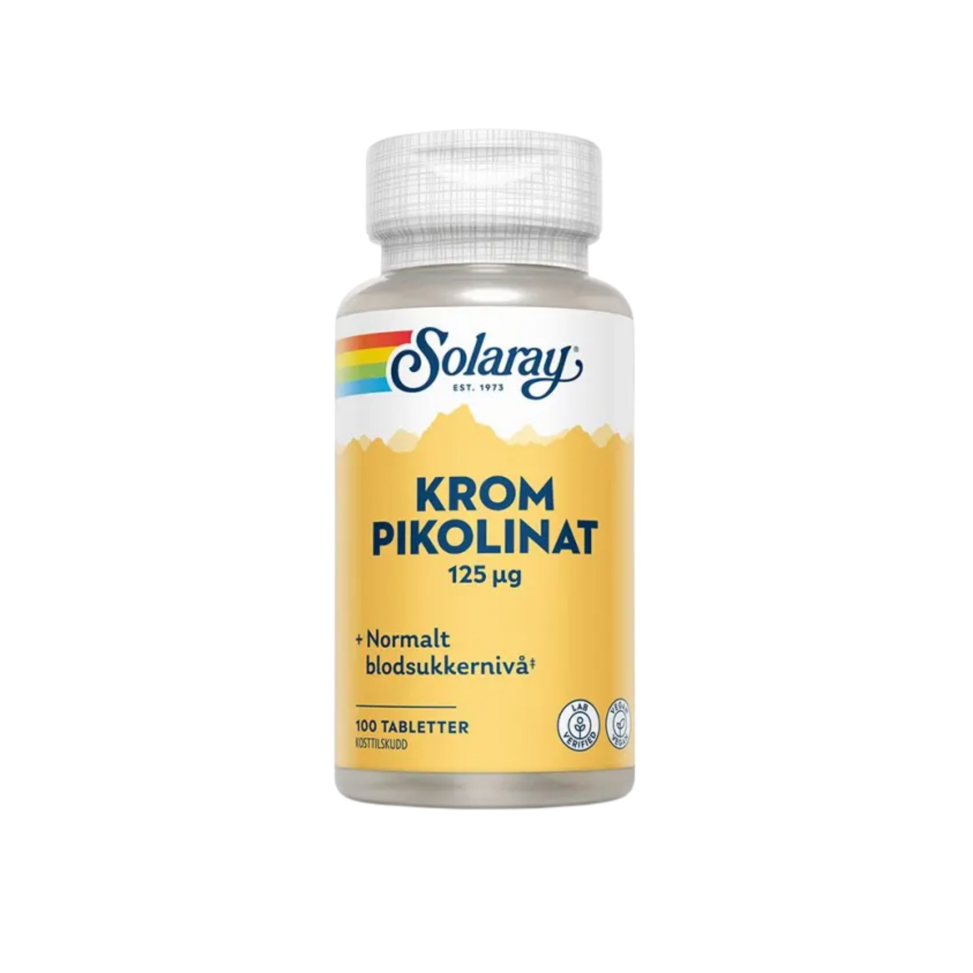Solaray Krom Pikolinat er et kosttilskudd som inneholder 125 mikrogram trivalent krom bundet til pikolinsyre per tablett. Denne organiske formen av krom er kjent for sitt gode opptak i kroppen. Krom er et essensielt sporstoff som bidrar til normal omsetning av makronæringsstoffer og til å opprettholde normale blodsukkernivåer. Produktet er spesielt nyttig for personer som ønsker å stabilisere blodsukkeret og dempe søtbehovet.