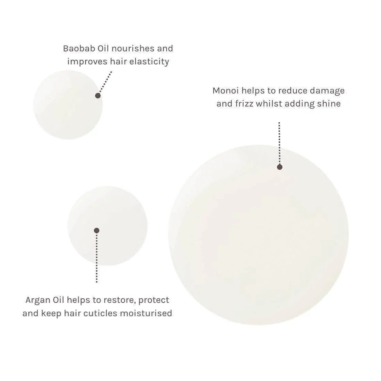 Nourishing Hair Elixir fra Evolve er et lett, økologisk hårserum som gir nydelig glans, temmer frizz og styrker håret uten å tynge. Formulert med nærende arganolje, kokos og baobab for å beskytte mot varme, forbedre elastisitet og gi silkemykt hår. Passer alle hårtyper – spesielt tørt, frizzy eller slitt hår.