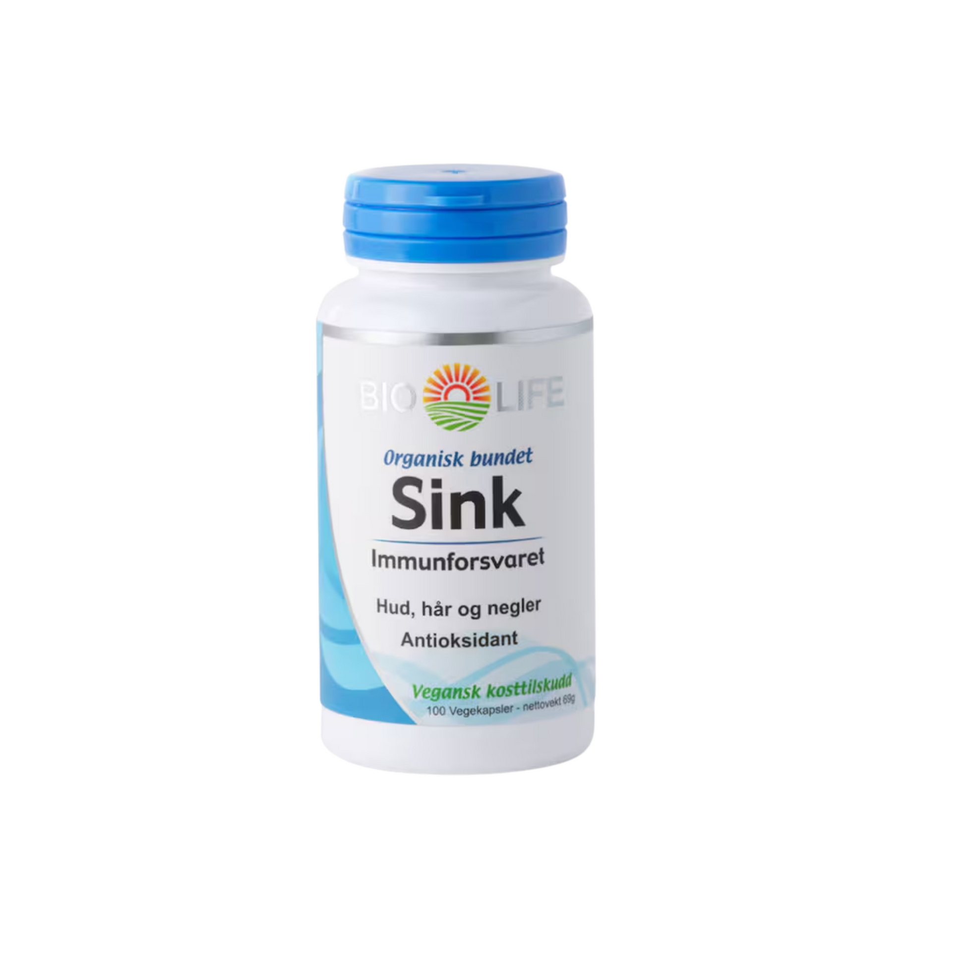 Bio Life Sink er et kosttilskudd som inneholder to former for organisk bundet sink: sinkmetionin og sinksitrat. Disse formene er kjent for sin høye biotilgjengelighet, noe som sikrer effektivt opptak i kroppen. Sink er et essensielt mineral som spiller en rolle i over 200 enzymprosesser og er viktig for blant annet immunforsvaret, hud, hår, negler og reproduksjonsevne.