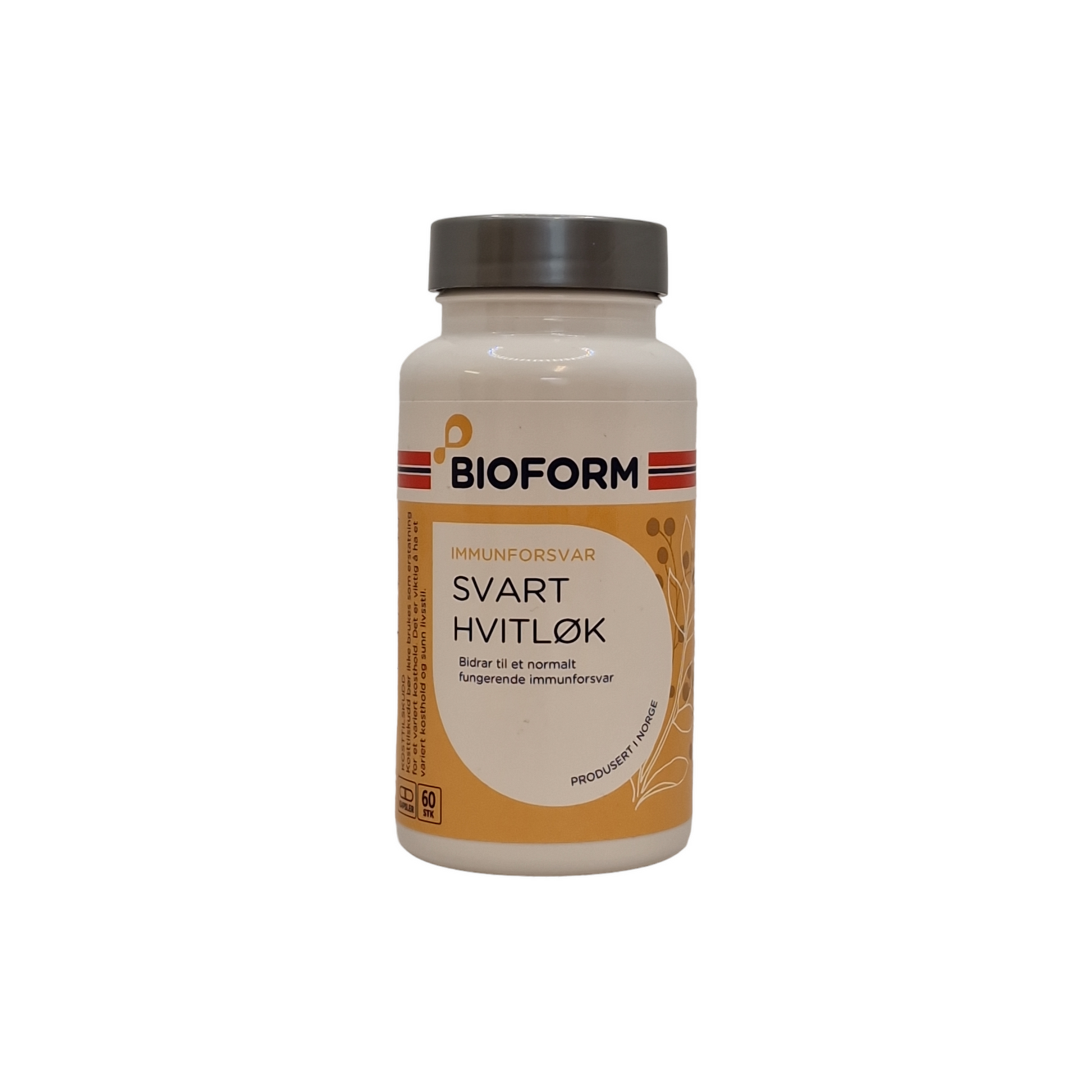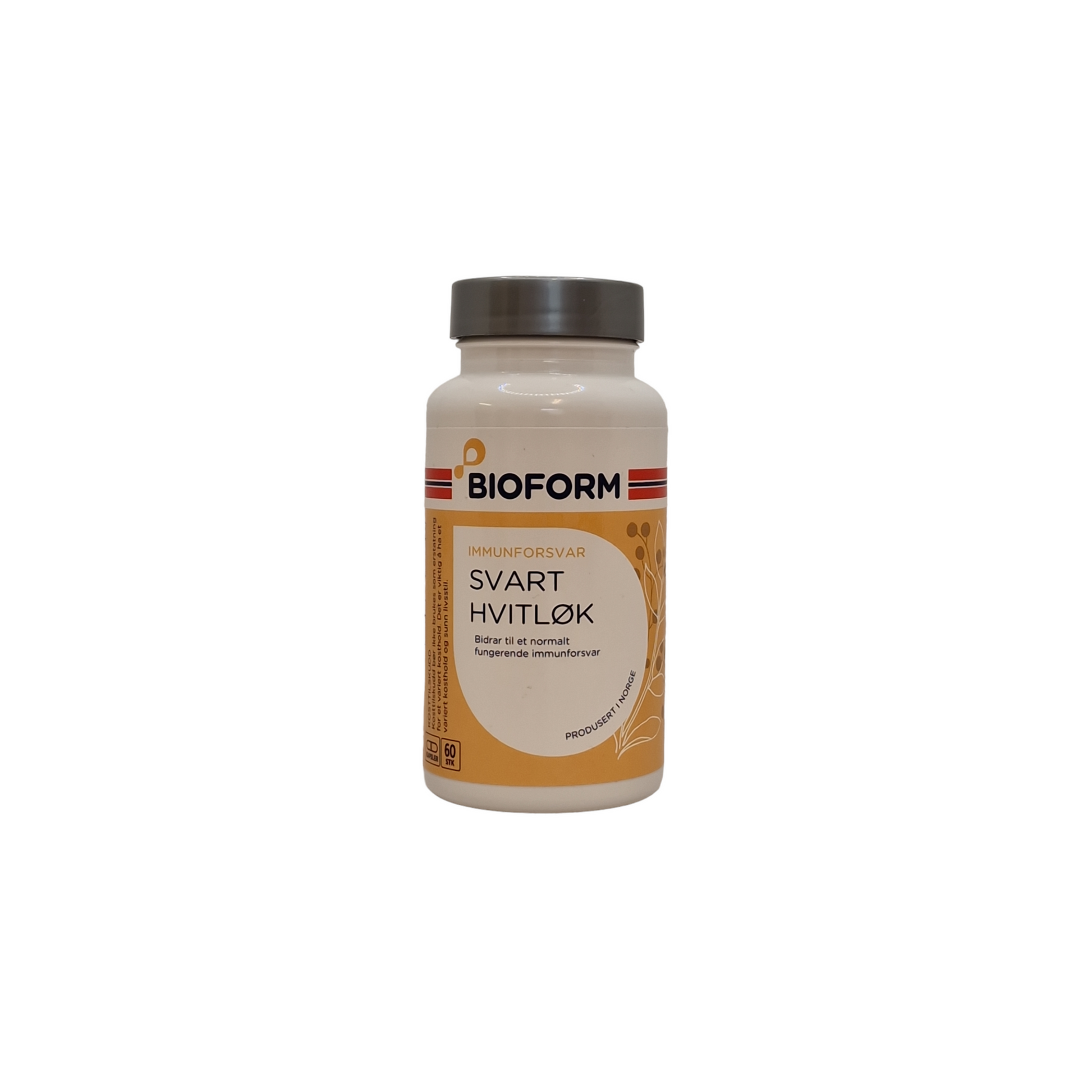 Bioform Svart Hvitløk er et kosttilskudd basert på fermentert hvitløk (Allium sativum), kjent for sitt høye innhold av antioksidanter som S-Allyl-Cystein (SAC). Fermenteringsprosessen gir hvitløken en mildere smak og gjør den skånsom for magen, samtidig som den bevarer og forsterker de helsebringende egenskapene.