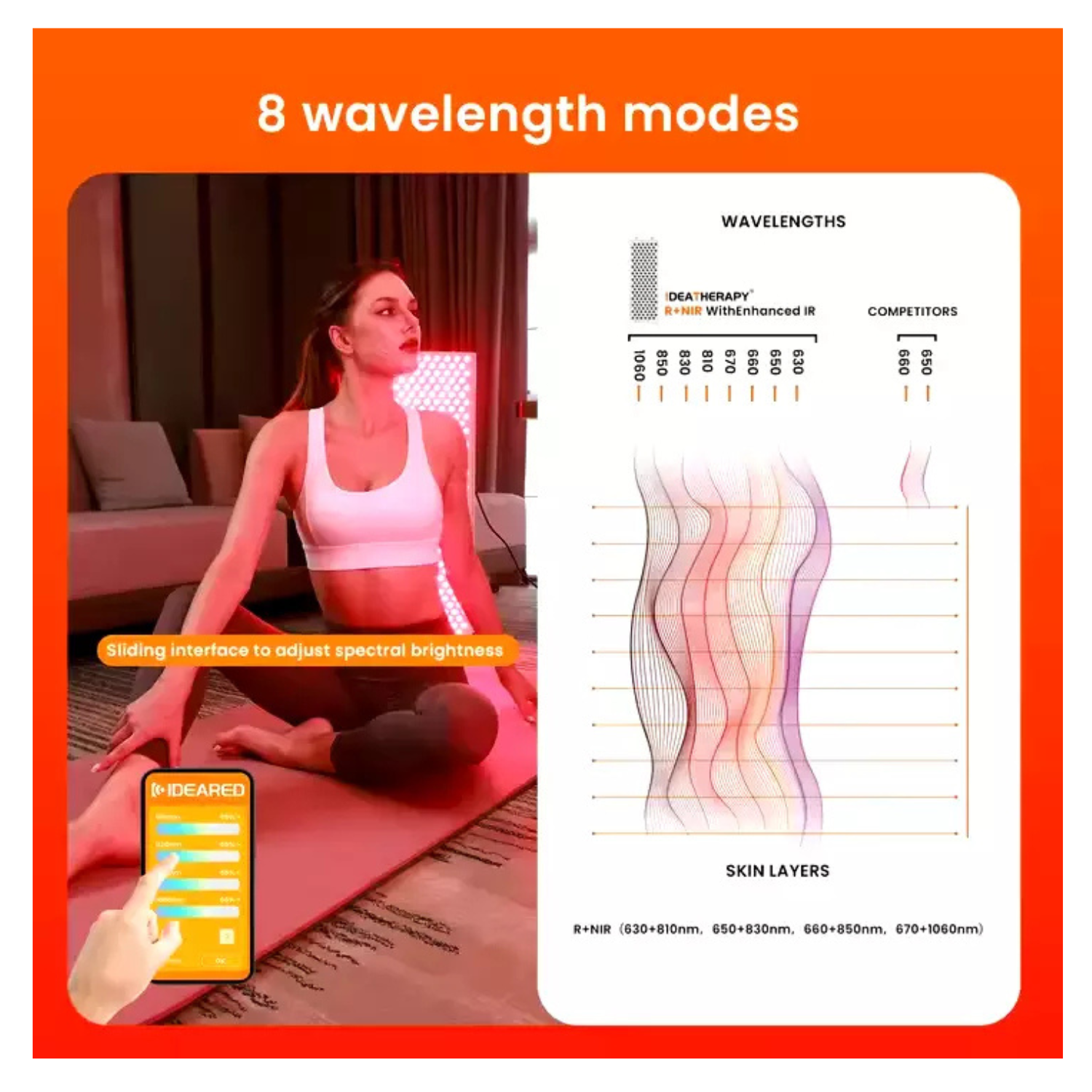 RLPRO Series LED Therapy Light kombinerer 8 kraftige bølgelengder for målrettet behandling av hud, muskler, energi og generell velvære – ideell for både hjem og klinikk.